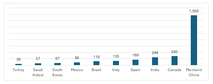 In 2023, Mainland China held the majority of LEED-certified buildings globally, with 1,563 LEED projects.