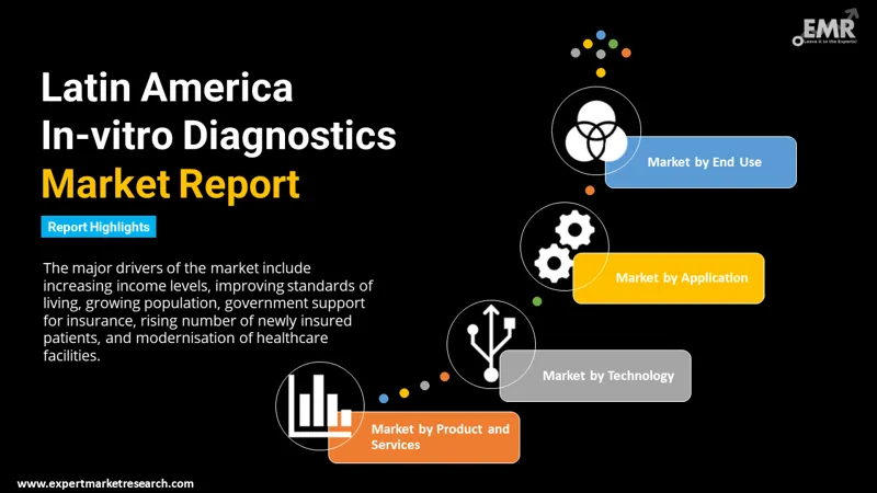 Leading in-vitro diagnostics companies seek growth helpful to business plans; regions such as Latin America offer significant market potential. In developing countries, rising levels of income and standards of living are expected to stimulate a new, health-conscious populace seeking quality medical care, and drive the Latin America In-vitro diagnostics market. Latin America is an important region for in-vitro diagnostics manufacturers, with reagents and instruments being key elements in important nations of the continent, including Brazil, Chile, Argentina, Colombia, Peru and Mexico. Key drivers are expected to be growing population, government insurance, patients that are newly insured, and modernized healthcare facilities.