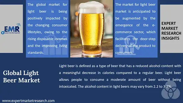 The key trends guiding the market demand are the rising awareness about the various health benefits offered by the product and the growing sales of light beer from e-commerce channels.