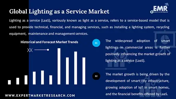 In addition, the widespread adoption of smart lightings in commercial areas is further positively influencing the market growth of lighting as a service (LaaS). Moreover, shifting preference towards sustainable lighting solutions and the emergence of LED as an energy-efficient lighting technology are emerging to be significant factors determing the growth of the market. Hence, these are some of the factors pushing the growth of the market.