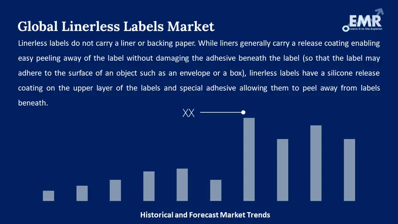 The global linerless labels market would likely grow at a CAGR of 5.60% during 2026-2035. Linerless labels refer to pressure-sensitive labels that do not carry a liner. These have a special release coating that permits the winding of the labels on a roll without the adhesive sticking to the label underneath.
