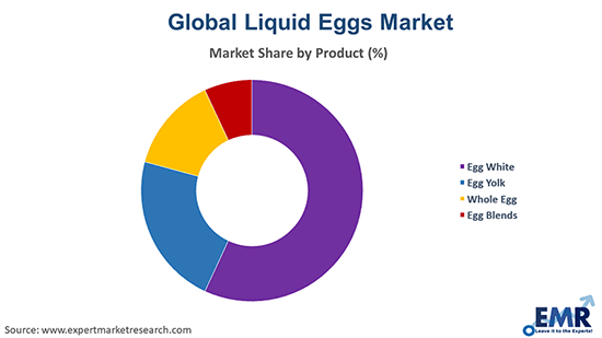 The major products in the liquid eggs industry are egg white, egg yolk, whole egg, and egg blends.