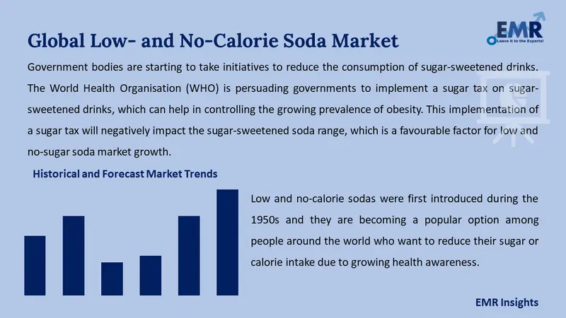 The global low- and no-calorie soda market size are expected to grow at a CAGR of 2.30% during the forecast period of 2026-2035. The market growth is expected to be driven by the rising awareness among people of calorie consumption and increasing demand for no-calorie beverages in various regions around the world.