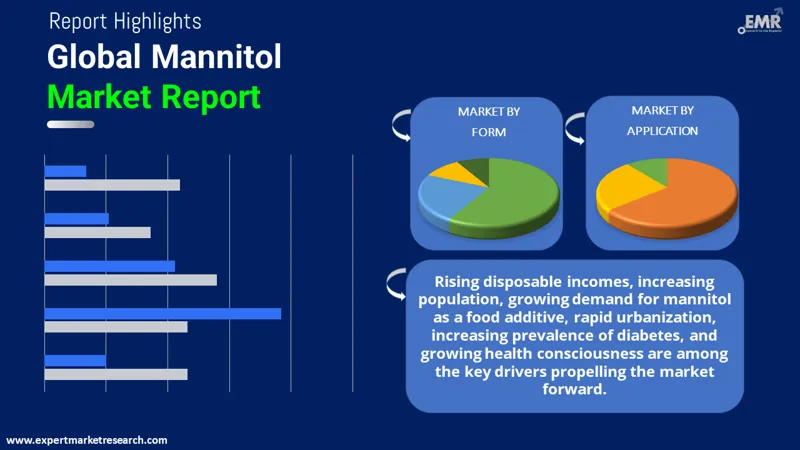 The major drivers of the market include rising disposable incomes, increasing population, rising demand for mannitol as a food additive, rapid urbanisation, rising cases of diabetes, and growing health consciousness.