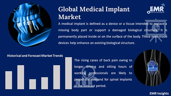 Technological advancements are a significant driver of the market. The rising introduction of advanced biocompatible metals, polymers, and ceramics, that improve the durability and functionality of medical implants is set to fuel the market demand. Innovation in 3D printing technology and growing demand for customized implants are also poised to shape the medical implant market dynamics. The rising prevalence of chronic diseases including a high incidence of orthopedic disorders, cardiovascular diseases, and dental issues are boosting the market size. Moreover, increased regulatory approvals of novel medical implants and continuous improvements in implant design are anticipated to affect the market landscape in the forecast period.