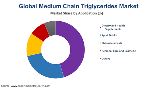 Apart from food and nutrition, MCTs are frequent ingredients in cosmetics and personal care products. MCTs have moisturizing and soothing properties which make them a key ingredient for hair and skincare products, including moisturizers, cleansers, and serums. The oil is much appreciated for its moisturizing abilities on the skin in a non-comedogenic way and is also known for its antioxidant properties. MCTs are also being used for their nourishing and conditioning effects in hair care formulations. Further, the rising medium chain triglycerides demand indicates the increasing interest of consumers in using natural and plant-sourced ingredients for beauty and wellness routines.