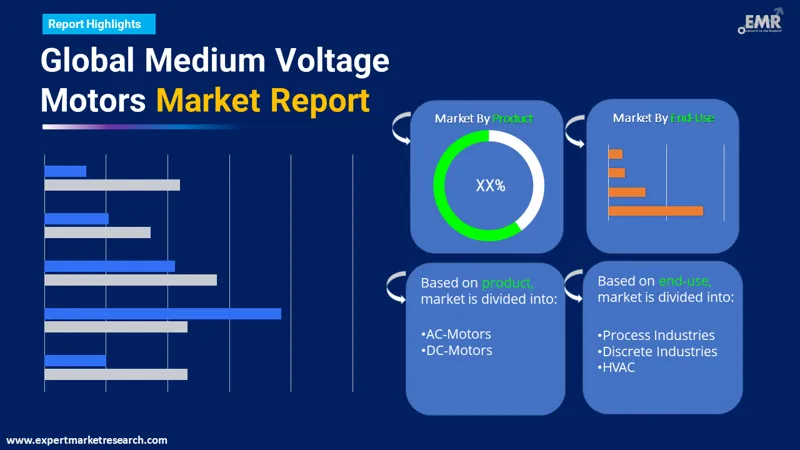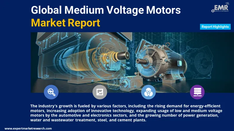 The medium voltage motors market is growing driven by various factors, such as the rising demand for energy efficiency, greater adoption of automation and IoT, the expansion of industrial infrastructure, and the transition towards integrating renewable energy sources.