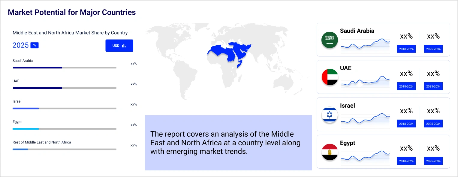 The major countries in the market are Saudi Arabia, United Arab Emirates, Iran, Israel, Egypt, Morocco, and Qatar, among others.