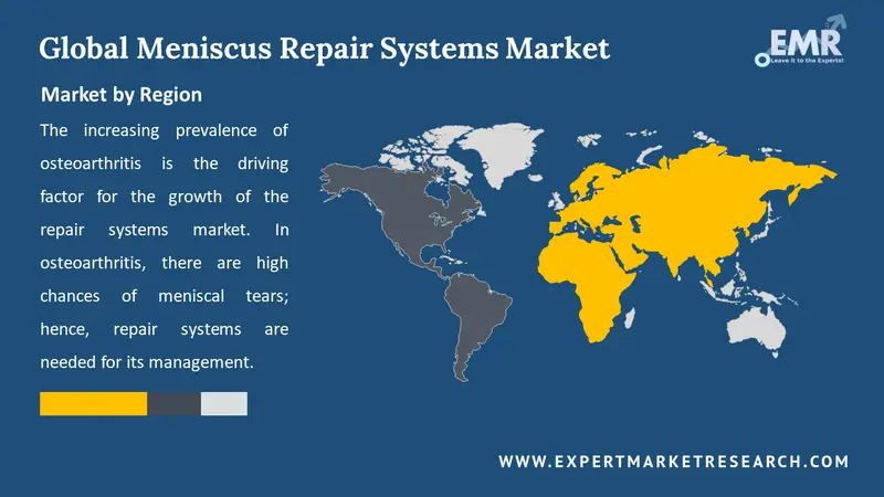 North America holds the largest share of the global meniscus repair systems treatment market owing to its increased research and development activities, increased healthcare expenditure, and rising prevalence of osteoarthritis in this region.