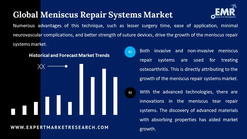 With the advanced technologies, there are innovations in the meniscus tear repair systems. The discovery of advanced materials with absorbing properties has aided market growth. The key players are developing ergonomic products with excellent knitting techniques. Novel product launches and approvals are thus facilitating the market expansion.