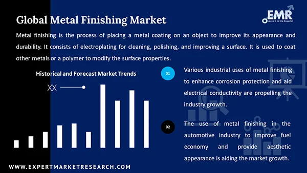 The market is being driven by the use of metal finishing in the automotive sector and the aerospace and defence industry and the increasing demand for durable, war-resistant products.
