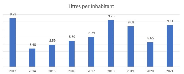 Figure: Consumption of Paints per Capita (Litres per Inhabitant)