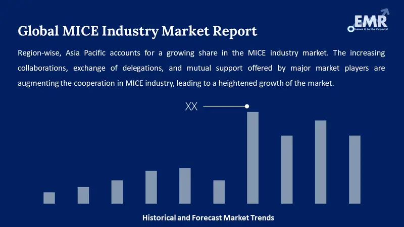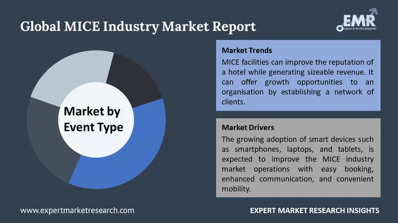 The key market trends include the favourable policies of various governments encouraging MICE tourism and growing collaborations between major MICE industry players.