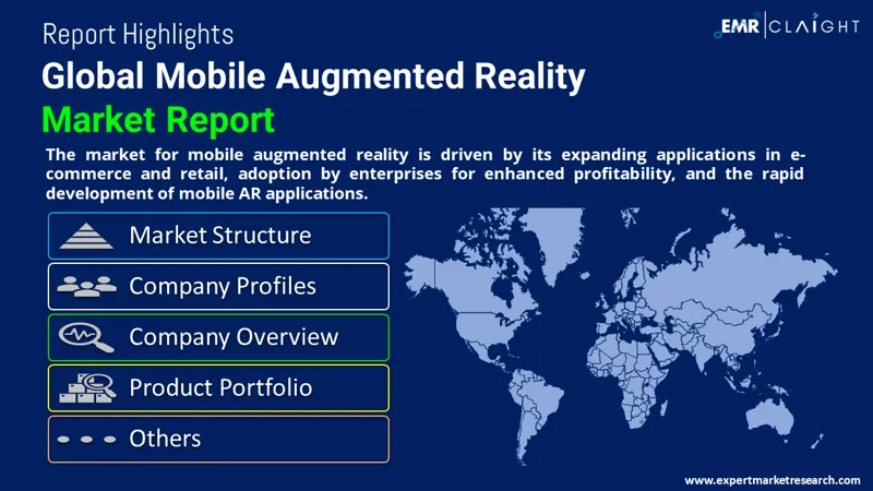 The increasing applications of mobile augmented reality in e-commerce and retail, rising adoption by enterprises to enhance business profitability, and rapid development of mobile augmented reality applications are the major drivers of the market.