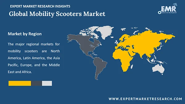 The major regional markets for mobility scooters are North America, Latin America, the Asia Pacific, Europe, and the Middle East and Africa.