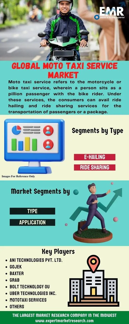 Moto taxi service refers to the motorcycle or bike taxi service, wherein a person sits as a pillion passenger with the bike rider. Under these services, the consumers can avail ride hailing and ride sharing services for the transportation of passengers or a package. In addition, moto taxi services can be availed for both short and long distance services and are increasingly utilised in heavily populated areas, such as near retail shops and subways.