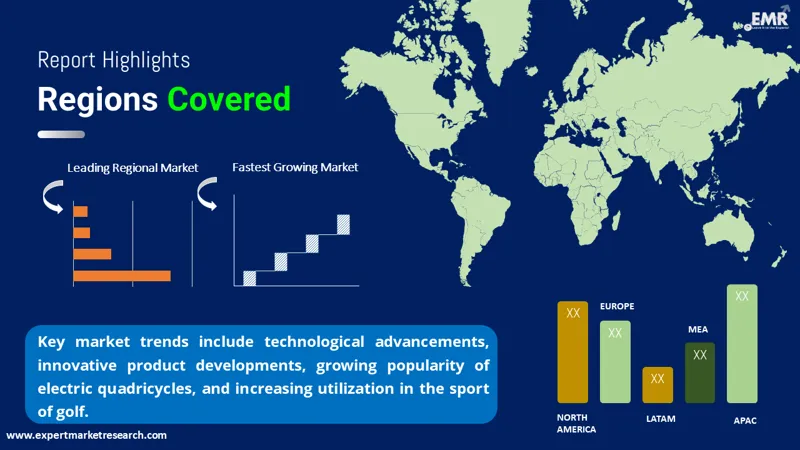 The key trends in the market include the technological upgradations, innovative products developments, increasing popularity of electric quadricycles, and rising use in golf.