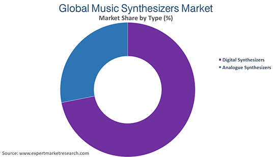 Digital synthesizers and analogue synthesizers are the types of music synthesizers in the global market.