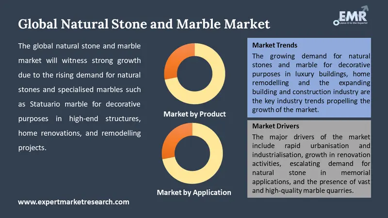 Growing preference for natural and eco-friendly materials and expanding construction and renovation activities are boosting the natural stone and marble market development.