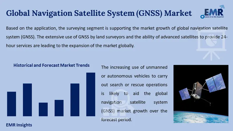Based on the application, the surveying segment is supporting the market growth of global navigation satellite system (GNSS). The extensive use of GNSS by land surveyors and the ability of advanced satellites to provide 24-hour services are leading to the expansion of the market globally. The system can operate in different environments and provides centimetre-level accurate information about the Earth’s surface locations using satellite signals. The use of GNSS helps expand the project size as it allows to conduct surveys across large tracts of land. In addition, the rising inclination of surveyors towards global navigation satellite systems due to their cost-effectiveness as they require less labour to complete large-scale projects is accelerating the market development. Further, the increasing use of unmanned or autonomous vehicles to carry out search or rescue operations is likely to aid the global navigation satellite system (GNSS) market growth over the forecast period.