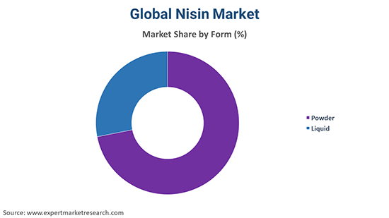 Powder and liquid are the available forms of nisin in the global nisin market.