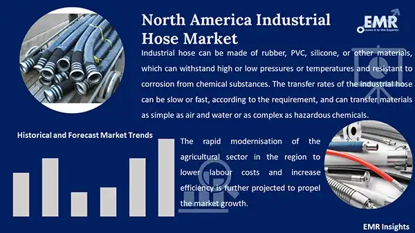 The industrial hose market in North America is driven by the rising sale of automobiles and the automotive components. Industrial hose is a crucial component, which enhances the fuel efficiency and bolsters the engine performance. The market is anticipated to be aided by the rising demand for electric vehicles in the region. Furthermore, the rising application of industrial hose in the construction and mining, oil and gas and chemicals, and pharmaceutical industries is likely to augment the market growth in the forecast period. The rapid modernisation of the agricultural sector in the region to lower labour costs and increase efficiency is further projected to propel the market growth.