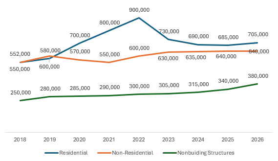 The North America construction market continues to grow, driven by factors such as urbanisation, population growth, and infrastructure renewal projects. Additionally, high-growth segments for the USA’s construction sector in 2022 included multifamily and residential improvements, manufacturing, commercial, sewage and waste disposal, water supply, and others. These sectors grew with an annual growth rate of over 10%.