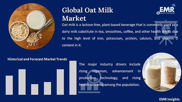 The global oat milk industry is being driven by factors such as rising population with lactose intolerance and shifting consumer preferences towards immunity-boosting products. Further, the outbreak of coronavirus accelerated the already shifting preferences for immunity-inducing products; thereby contributing to the market growth of oat milk. In line with this, industry participants are being motivated to develop fresh solutions as customers are now increasingly shifting to nutrition-dense replacements and low-calorie diets. The growing demand for such solutions is propelling the oat milk industry. Additionally, growing awareness about the dietary benefits of oat milk, which contains high level of calcium and Vitamin B12, is bolstering the market growth of oat milk.