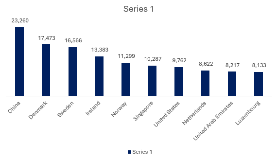 Figure: Top 10 Countries by Average Square Footage, 2022 (Sq. ft.)