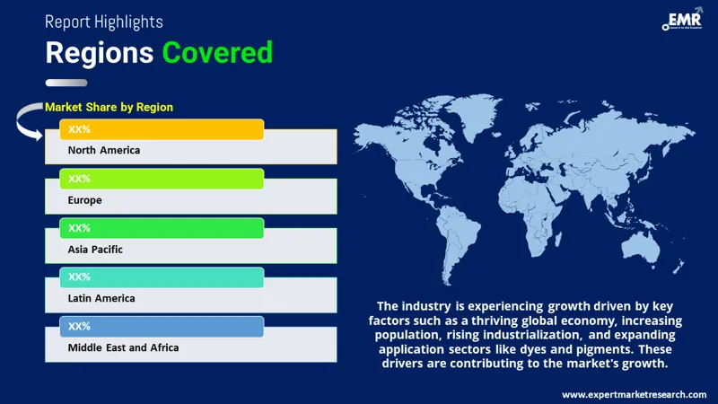 The major drivers of the market are rising global economy, increasing population, rising industrialisation, and growing application sectors like dyes and pigments.