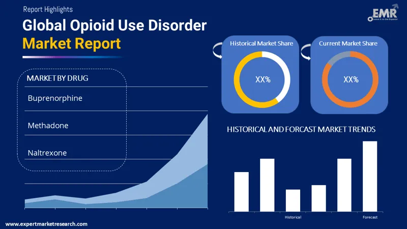 Opioid use disorder is a chronic illness combined with compulsive, prolonged, and repeated self-administration of opioids. There are two kinds of patients in opioid use disorder: patients addicted to non-medical opioids and patients addicted to medical opioids. The opioid use disorder market is segmented based on drugs:
