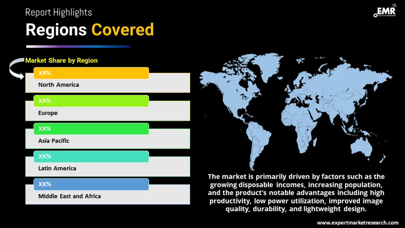 The major drivers of the market include rising disposable incomes, increasing population, and the product’s high productivity, low power utilisation, enhanced image quality, durability, and lightweight.