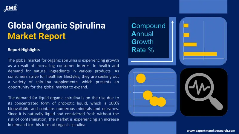 The growing demand for natural ingredients, increasing awareness regarding the health benefits of spirulina, preference for organic products, and expansion of production capabilities are major market drivers for organic spirulina.