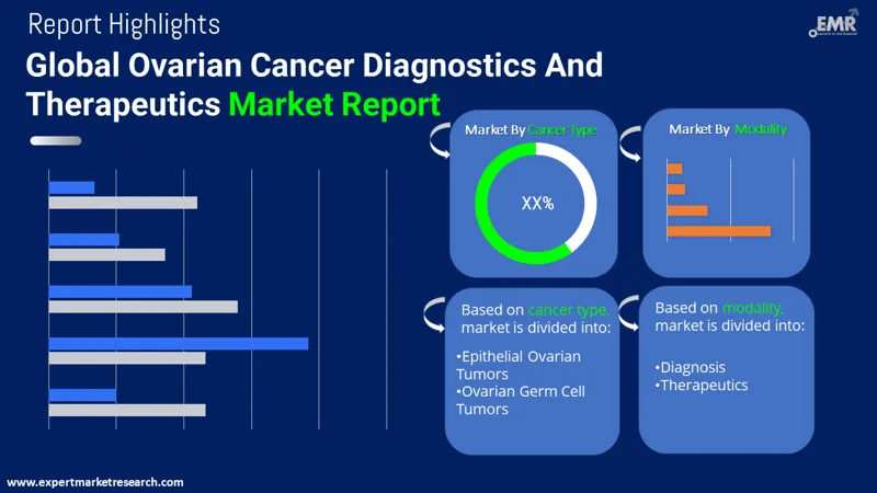 Ovarian diagnostics and therapeutics are used to detect, treat, and heal ovarian cancer. The global ovarian cancer diagnostics and therapeutics industry can be segmented into cancer type and modality.