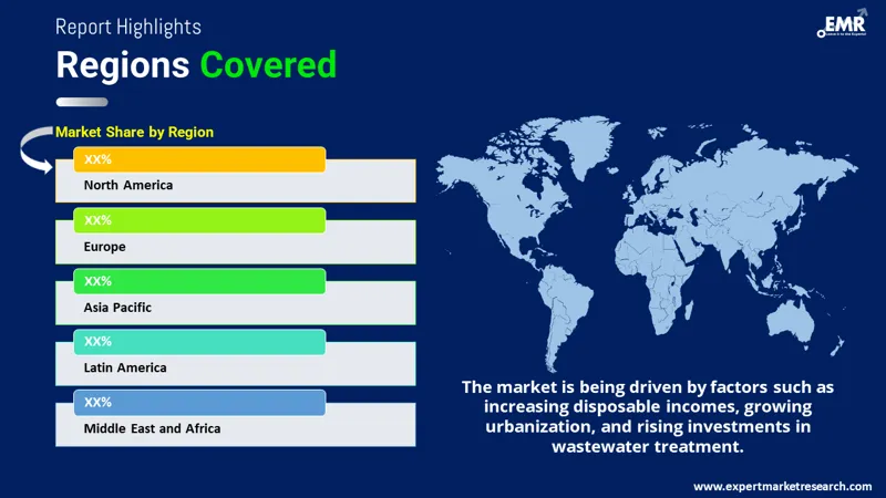 The major drivers of the market include the rising disposable incomes, rising urbanisation, and the increasing investments into the treatment of wastewater.