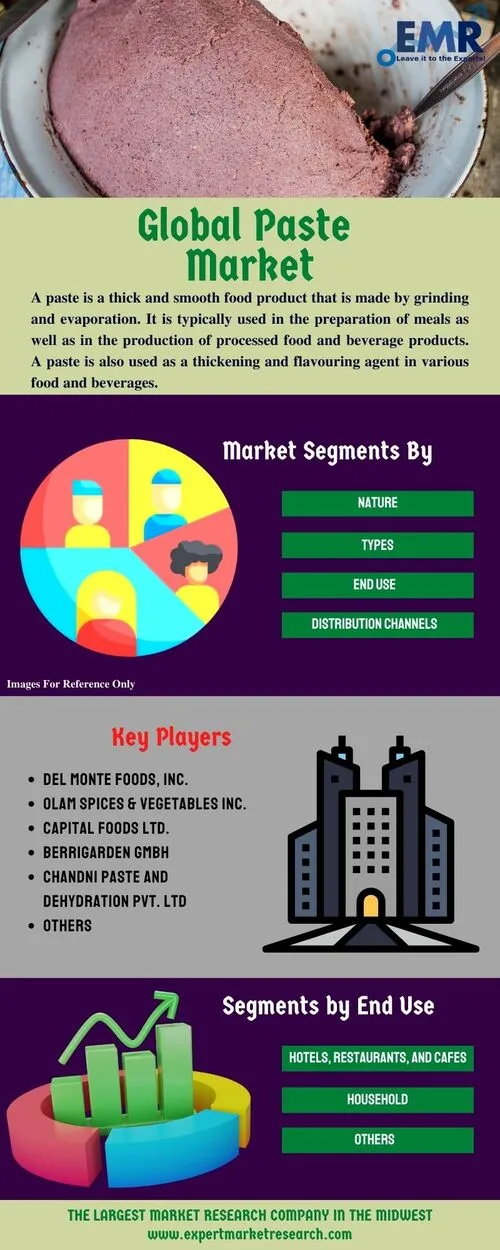 A paste is a thick and smooth food product that is made by grinding and evaporation. It is typically used in the preparation of meals as well as in the production of processed food and beverage products. A paste is also used as a thickening and flavouring agent in various food and beverages. Moreover, pastes are incorporated to boost the flavour and nutritional profiles of baked and confectionery products.