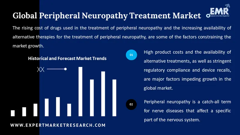 High product costs and the availability of alternative treatments, as well as stringent regulatory compliance and device recalls, are major factors impeding growth in the global market. The rising cost of drugs used in the treatment of peripheral neuropathy and the increasing availability of alternative therapies for the treatment of peripheral neuropathy, are some of the factors constraining the market growth.