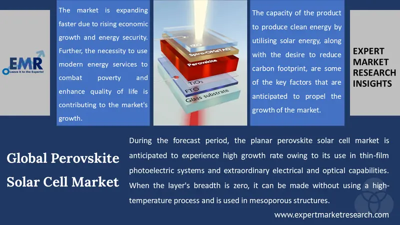 The major drivers of the market include the rise in economic growth and energy security, rise in demand of perovskite solar cell because of growing need to decline prices of solar cells, growing environmental concerns, and growing requirement for alternative energy to minimise reliance on fossil fuels.