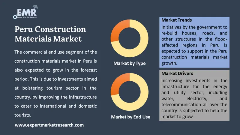 The commercial end use segment of the construction materials market in Peru is also expected to grow in the forecast period. This is due to investments aimed at bolstering tourism sector in the country, by improving the infrastructure to cater to international and domestic tourists. The medical and healthcare infrastructure is also improving, fuelled by investments from the government aimed towards improving healthcare capabilities within Peru.