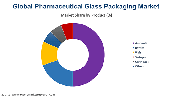 The major products of pharmaceutical glass packaging considered in the market report are ampoules, bottles, vials, syringes, and cartridges, among others.