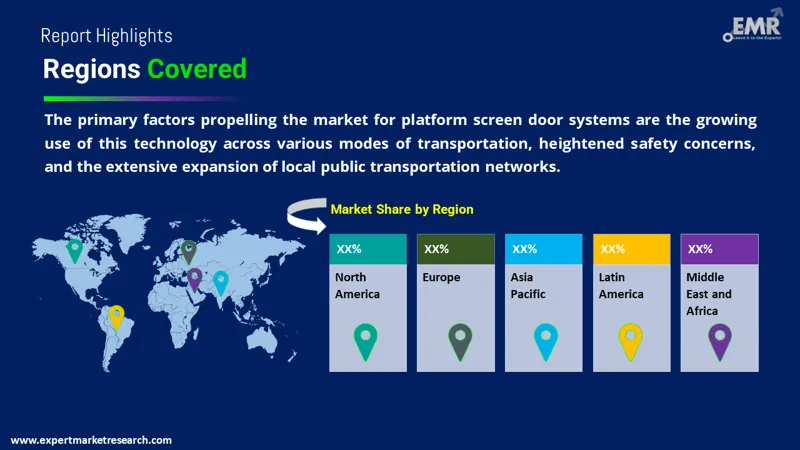 The major regions in the market for platform screen door systems are North America, Europe, Asia Pacific, Latin America, and the Middle East and Africa.