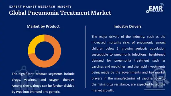 The major drivers of the industry, such as the increased mortality risks of pneumonia among children below 5, growing geriatric population susceptible to pneumonic infections, heightened demand for pneumonia treatment such as vaccines and medicines, and the rapid investments being made by the governments and key market players in the manufacturing of vaccines due to the rising drug resistance, are expected to aid the market growth.