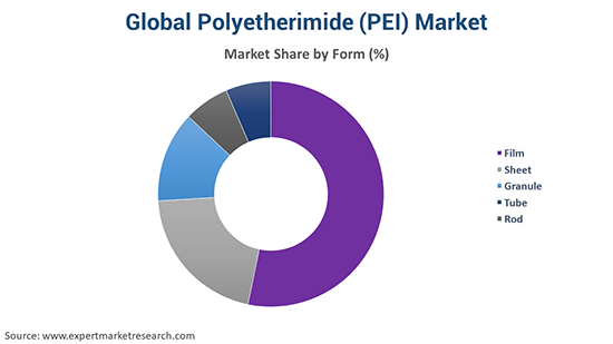 Film, sheet, granule, tube, and rod are the leading forms of polyetherimide (PEI) in the market.