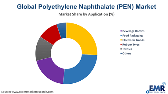 The major applications of polyethylene naphthalate (PEN) include beverage bottles, food packaging, electronic goods, rubber tyres, and textiles, among others.