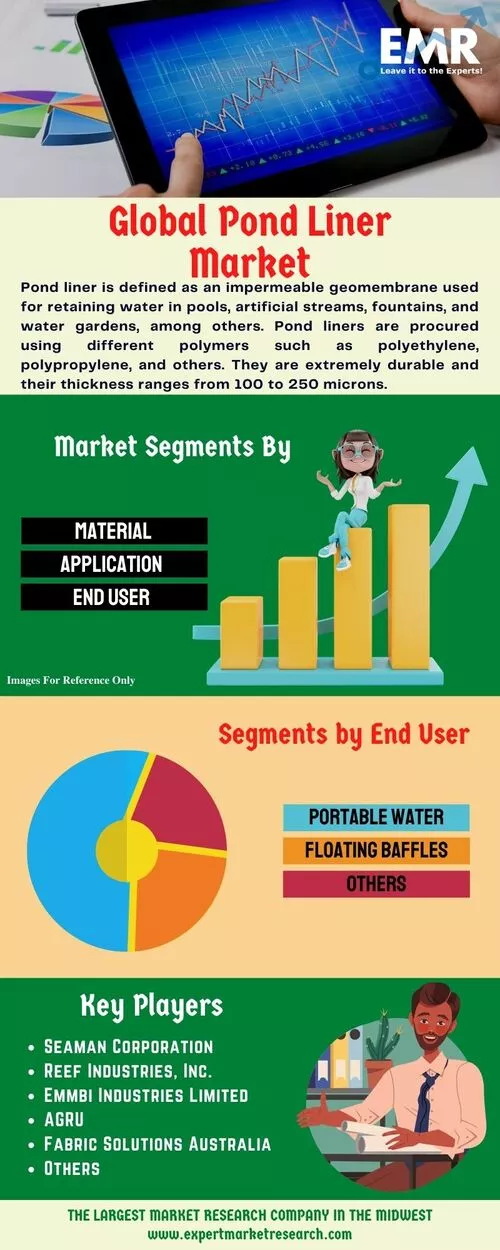 Pond liner is defined as an impermeable geomembrane used for retaining water in pools, artificial streams, fountains, and water gardens, among others. Pond liners are procured using different polymers such as polyethylene, polypropylene, and others. They are extremely durable and their thickness ranges from 100 to 250 microns.