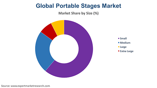 The portable stages industry is being driven by the rising demand from many fields like the sports and recreation industry, institutions, commercial events, and individual events. Further, the rapid expansion of the entertainment industry and the rising number of outdoor events, particularly in the top tier economies of developing regions, are predicted to propel the market growth further. The market is being invigorated by the rising demand for easy installation and customisable staging solutions according to the venue, which is predicted to boost the market growth over the forecast period.