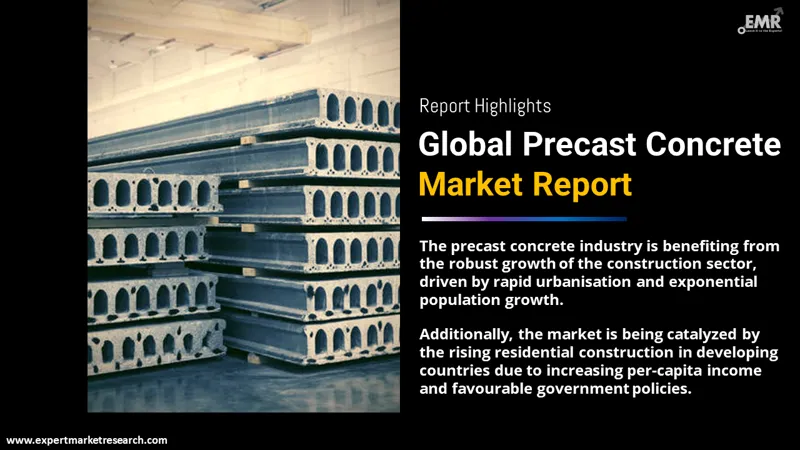 The robust growth of the construction sector owing to the rapid urbanisation and exponential population spurge is aiding the precast concrete industry. Moreover, the rising residential construction in the developing countries due to increasing per-capita income and favourable government policies is catalysing the market growth. As the demand for affordable housing increases, precast concrete is increasingly used to produce a large number of identical components, therefore lubricating the market growth. Precast concretes also offer high flexibility and precision, which aids in the creation of aesthetically pleasing and diverse production, which is consequently fuelling the market growth. It also reduces the construction time and skilled labour cost; hence, they are increasingly used in affordable construction, which is further accelerating the industry growth.