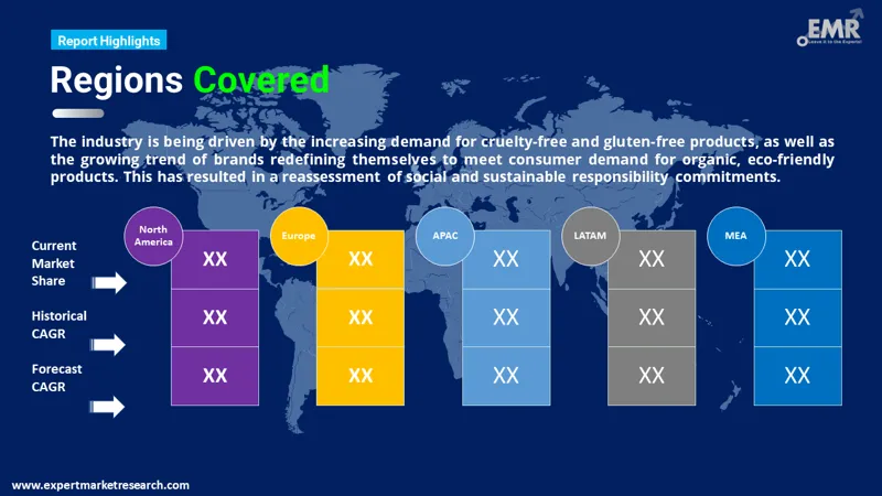 The demand for cruelty-free and gluten-free products is one of the significant drivers of the industry. Additionally, brands are continuously redefining themselves in order to meet consumers’ demand for organic and cruelty-free products, for which they are reassessing their commitment to social and sustainable responsibility; the surging demand for eco-friendly products is leading the market. Moreover, the development of customised cosmetics based on a person’s skin type and facial features is also expected to aid the market growth. In addition to this, the increasing focus on supply chain and price transparency to earn the trust of the consumers is lubricating the market growth. The rising focus on overall wellbeing and conscious consumerism has increased the demand for vegan products and is providing further impetus to the market.