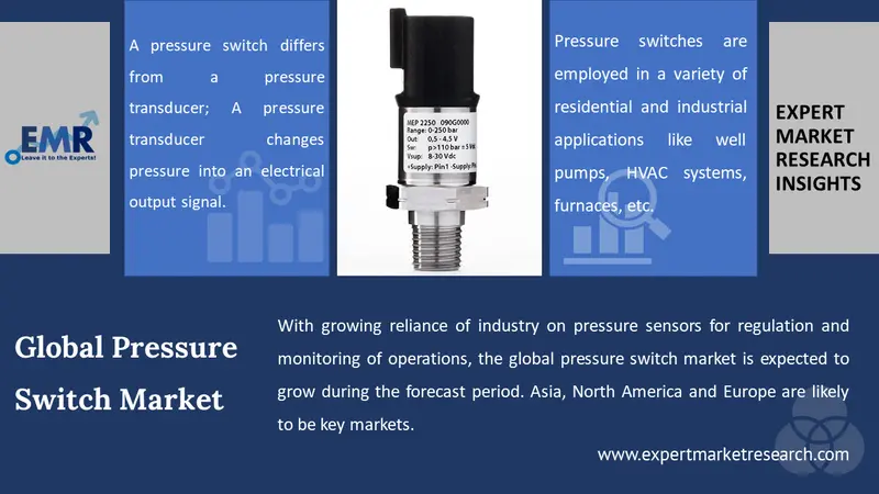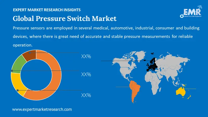 The pressure switch market dynamics and trends are bolstered by the widespread use of pressure sensors in medical, automotive, industrial, consumer, and building devices. These applications require precise and stable pressure measurements to ensure reliable operation. With the growing reliance of industry on pressure sensors for regulation and monitoring of operations, the pressure switch industry growth is expected during the forecast period. Asia, North America, and Europe are likely to be key markets.