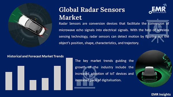 Radar sensors are increasingly used in military operations, security systems, automobiles, medical devices, and industrial applications, among others. The increased pace of digitalisation across the globe is estimated to fuel the demand of radar sensors market across various industries. Consumers are increasingly utilising IoT devices and smart technology, which comprise radar sensors. For instance, security systems and automatic doors, among others, make use of the motion detection technology offered by the radar sensors to detect any movement. In addition, these radar sensors are small and can offer accurate and precise information. Moreover, smartphones such as Google Pixel smartphones come with radar sensors that allow swipe features and reduce energy wastage by automatically switching the screen off when the user is away from the phone. Furthermore, the heightened application of radar sensors in security and surveillance operations is also predicted to drive market growth in the coming years.